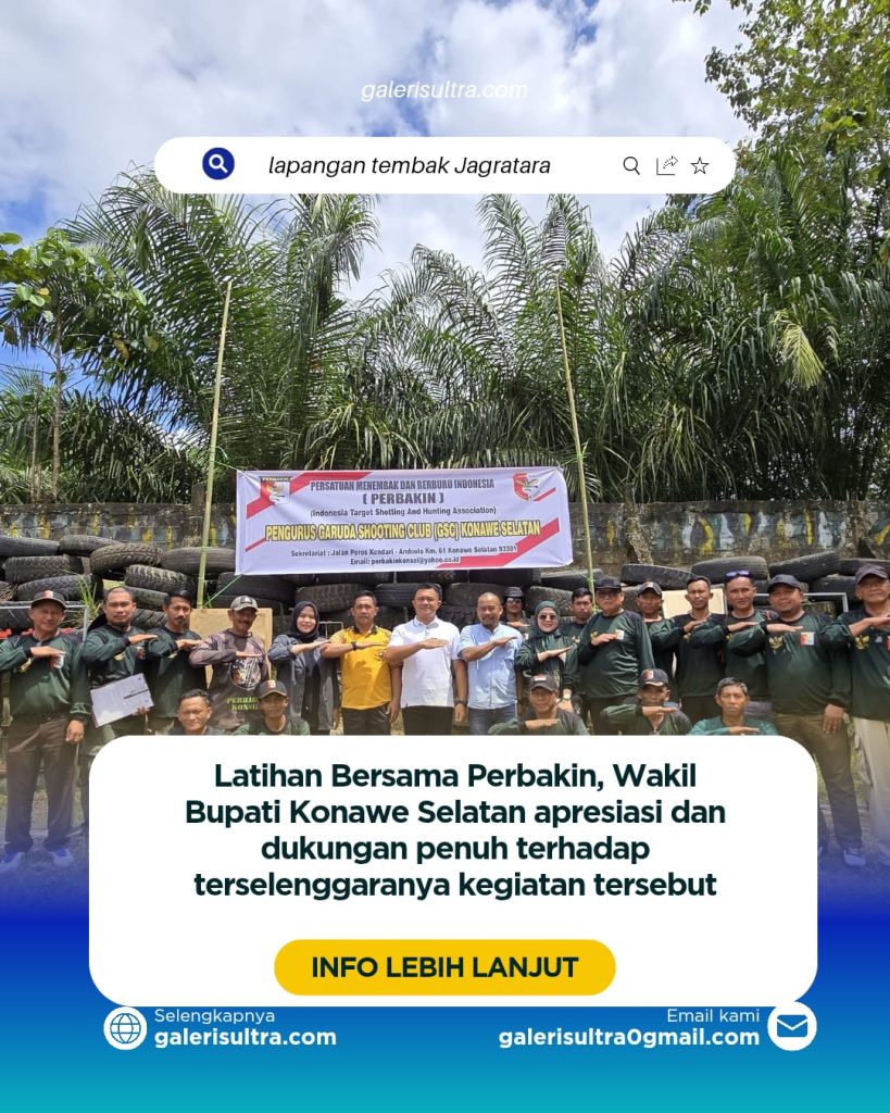 Konawe Selatan,Galerisultra.com 18 Oktober 2025 – Wakil Bupati Konawe Selatan Wahyu Ade Pratama Imran menghadiri kegiatan Latihan Bersama (Latber) Perbakin Antar Club se-Kabupaten Konawe Selatan yang berlangsung di lapangan tembak Jagratara Polres Konawe Selatan, Sabtu (18/10/2025).